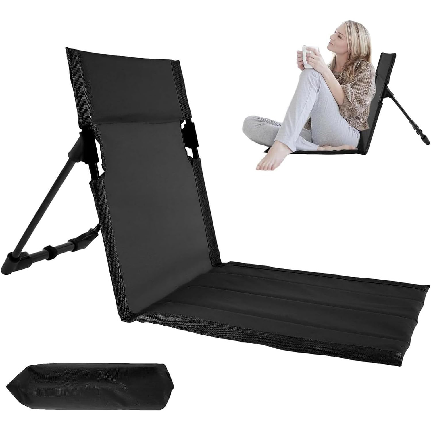 Silla plegable para acampar, liviana y cómoda con respaldo para exteriores, pesca, descansar en la playa, jardín usando una silla portátil ideal para el piso con respaldo, diseño portátil con tubo de aluminio