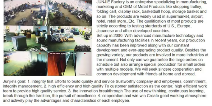 Nuestra empresa está especializada en el manejo del negocio de exportación de productos de hardware, que incluyen canastas de almacenamiento de alambre, carritos de mano, mini aros de baloncesto, soportes para plantas, estantes de exhibición, soportes de almacenamiento, sujetadores y piezas de estampado. Tenemos nuestra propia fábrica que hemos estado experimentando durante muchos años.